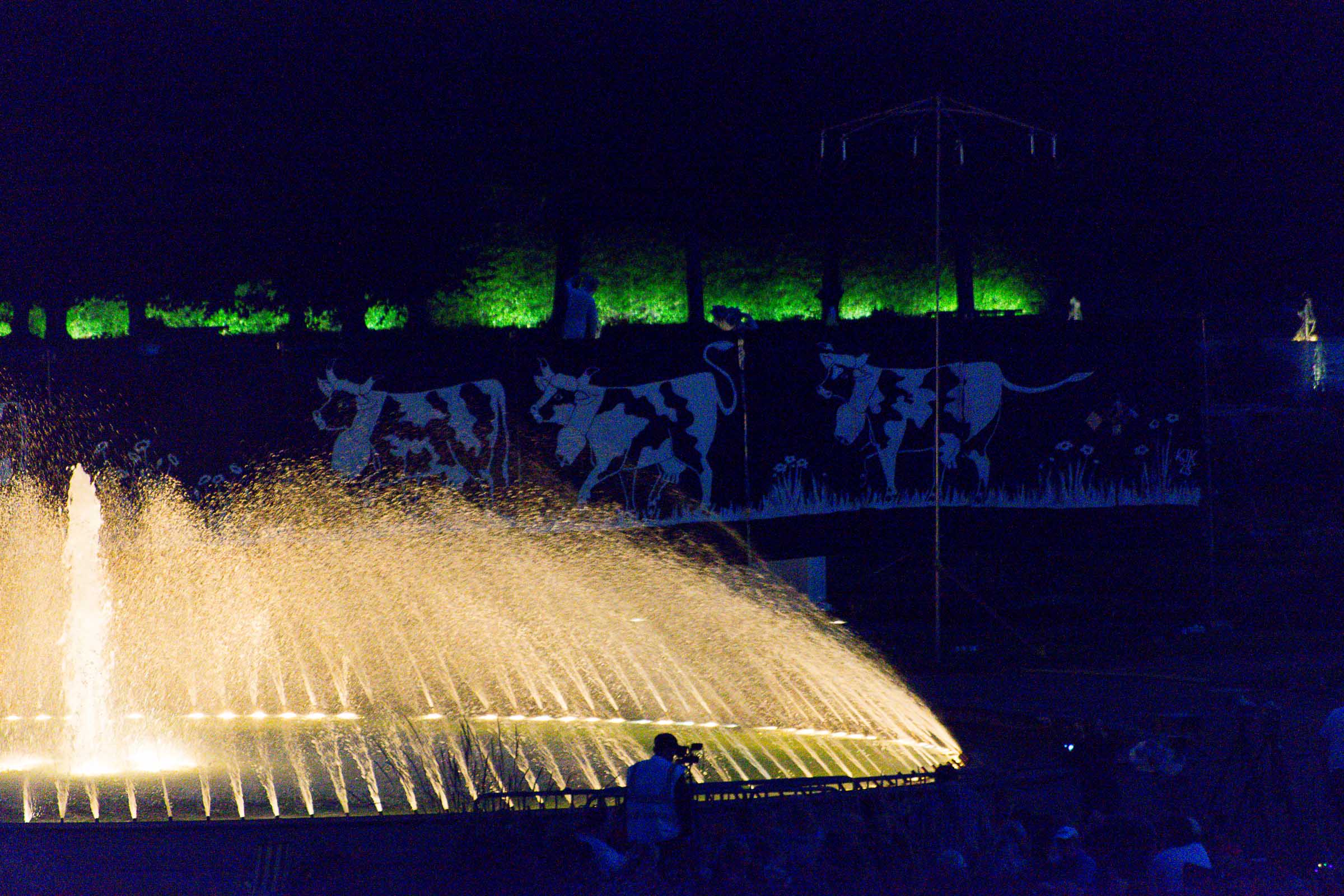 Neben dem Feuerwerk gab es auch Schweizer Unterhaltung: Ein Comedian aus Berlin brachte das Publikum zum Lachen – zwischen Skifahren, Fondue und Wortwitz. Die Fontänen im Park wurden zur Bühne, der Applaus war gross.
