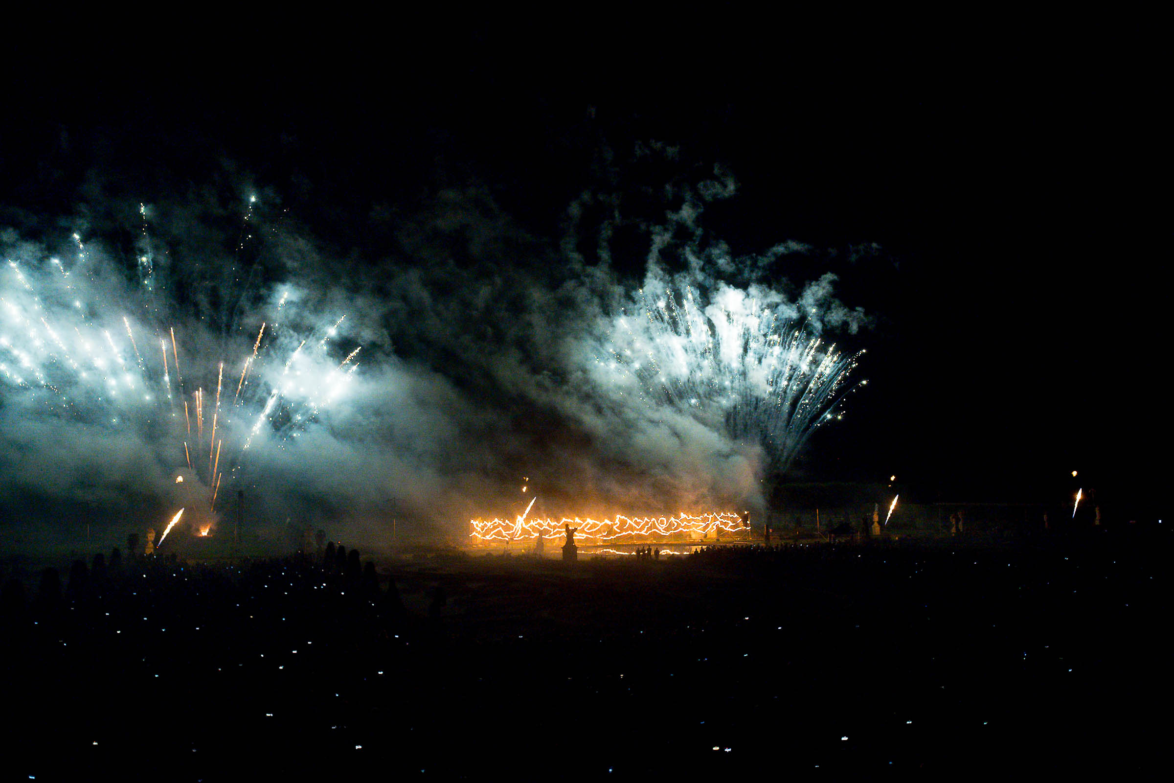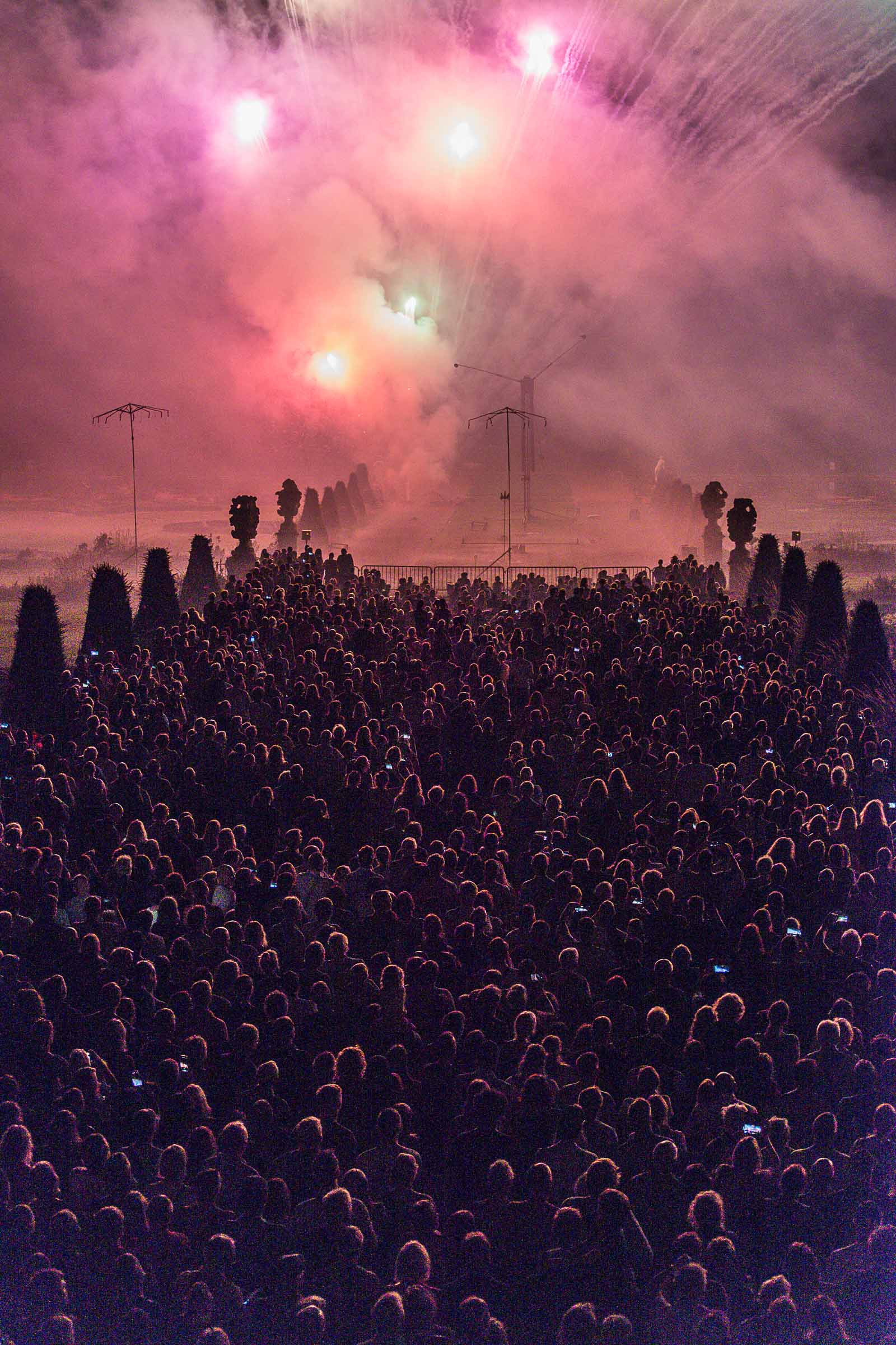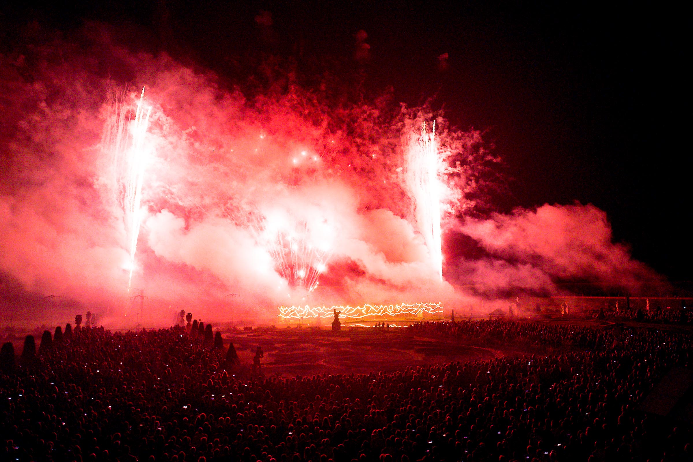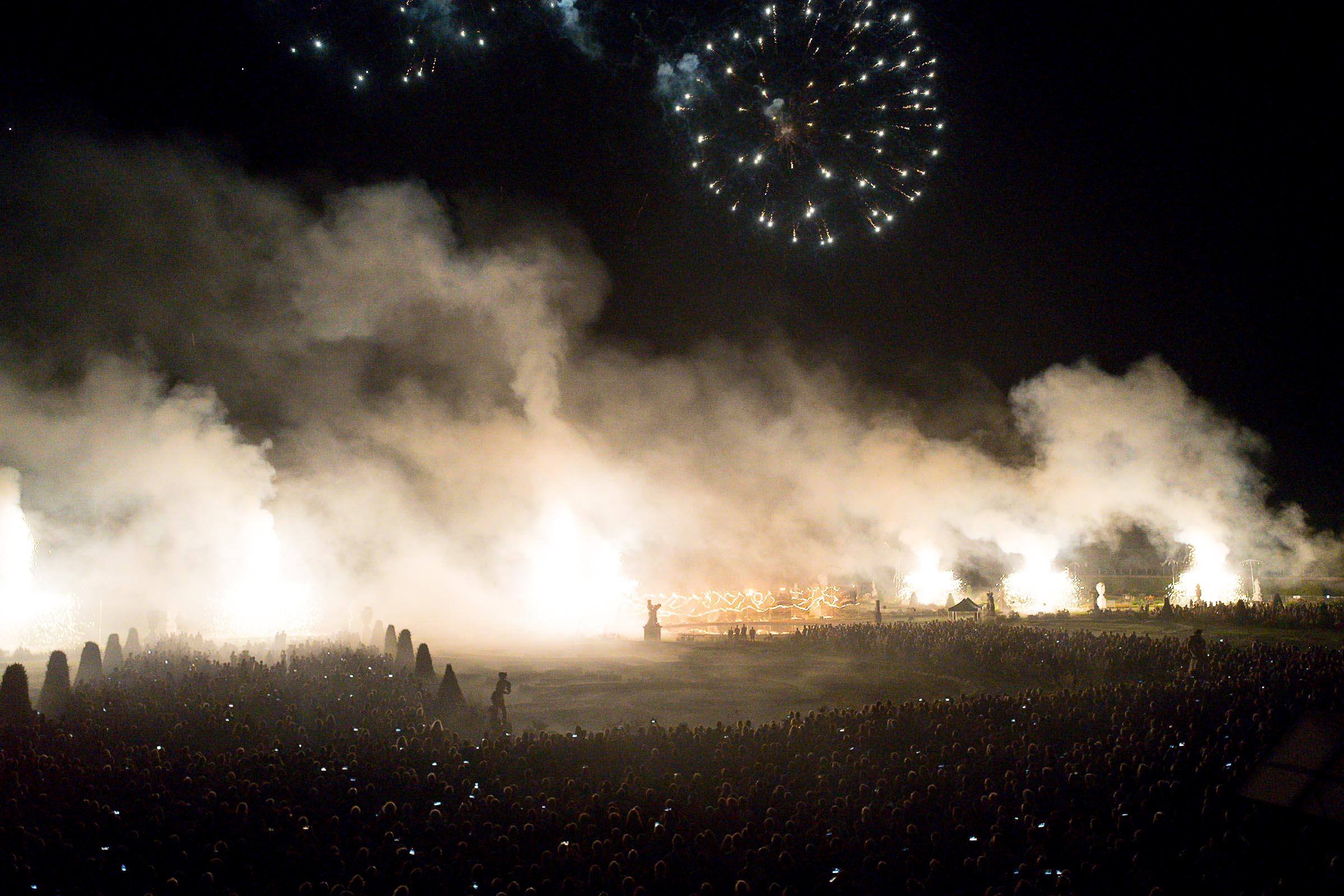 Doch zwei Stunden vor Beginn geschah das Unerwartete: Eine Windböe warf die Feuer-Berglandschaft um. Die Crew reagierte blitzschnell, baute alles neu auf – und rettete die Show.