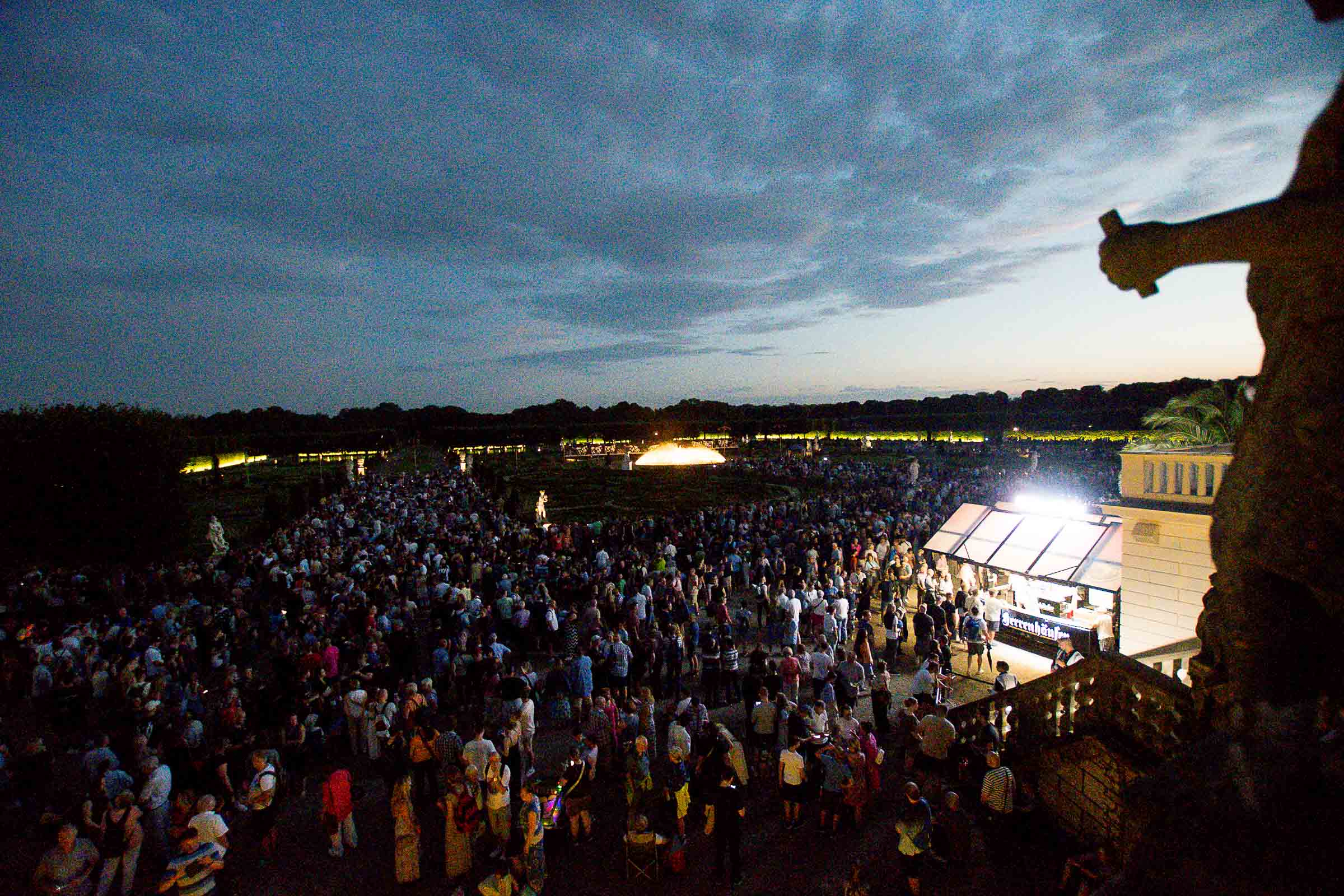 Heute sind die Gärten nicht nur ein Ort der Ruhe und Schönheit, sondern auch eine beliebte Kulisse für Hochzeiten, Konzerte und internationale Veranstaltungen. An Sommertagen flanieren Besucherinnen und Besucher durch die Alleen, während im Hintergrund Wasserfontänen tanzen und barocke Musik erklingt. Besonders beliebt ist der Park für Trauungen im Schloss und anschliessende Apéros im Grünen – ein romantisches Erlebnis mit historischem Flair.