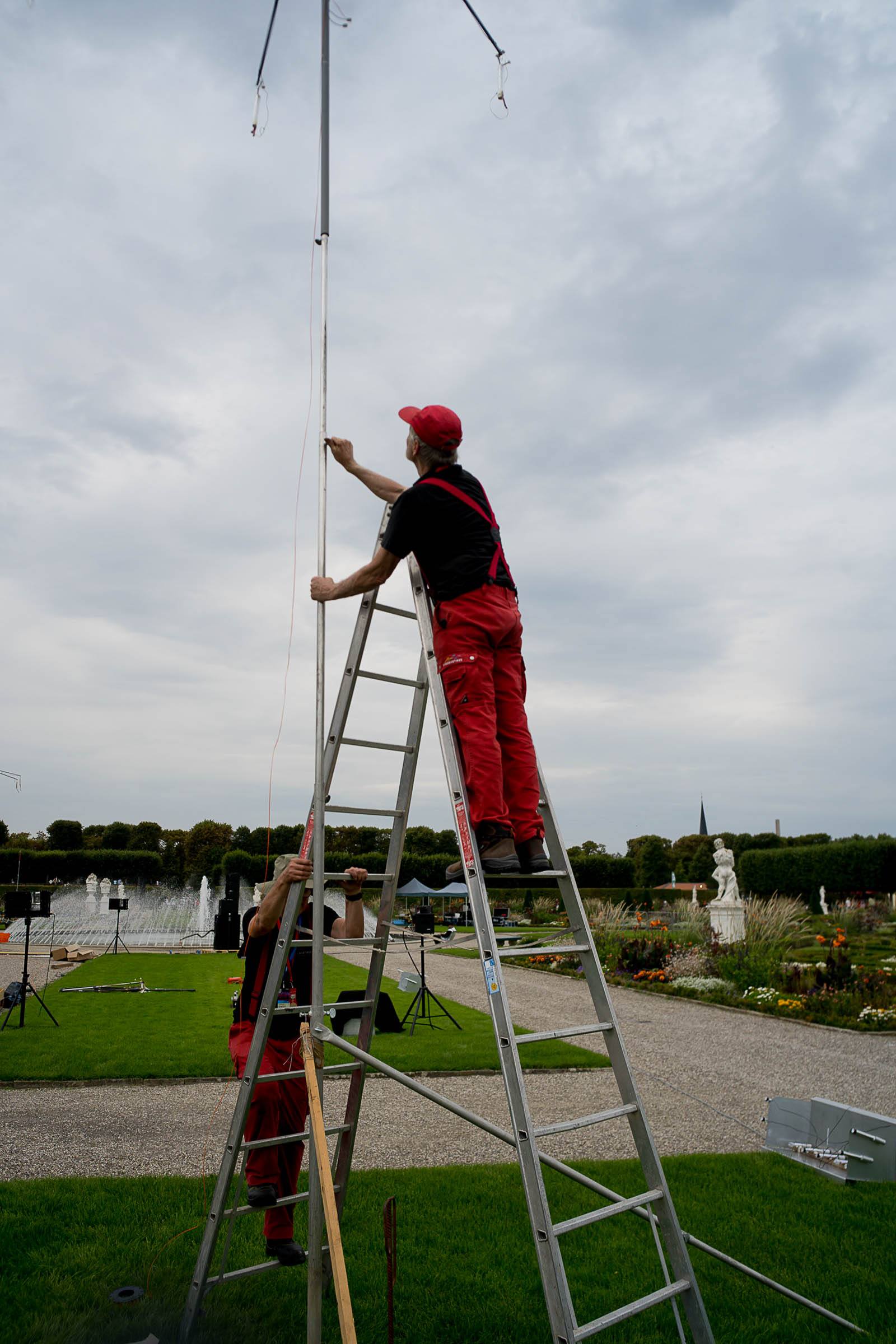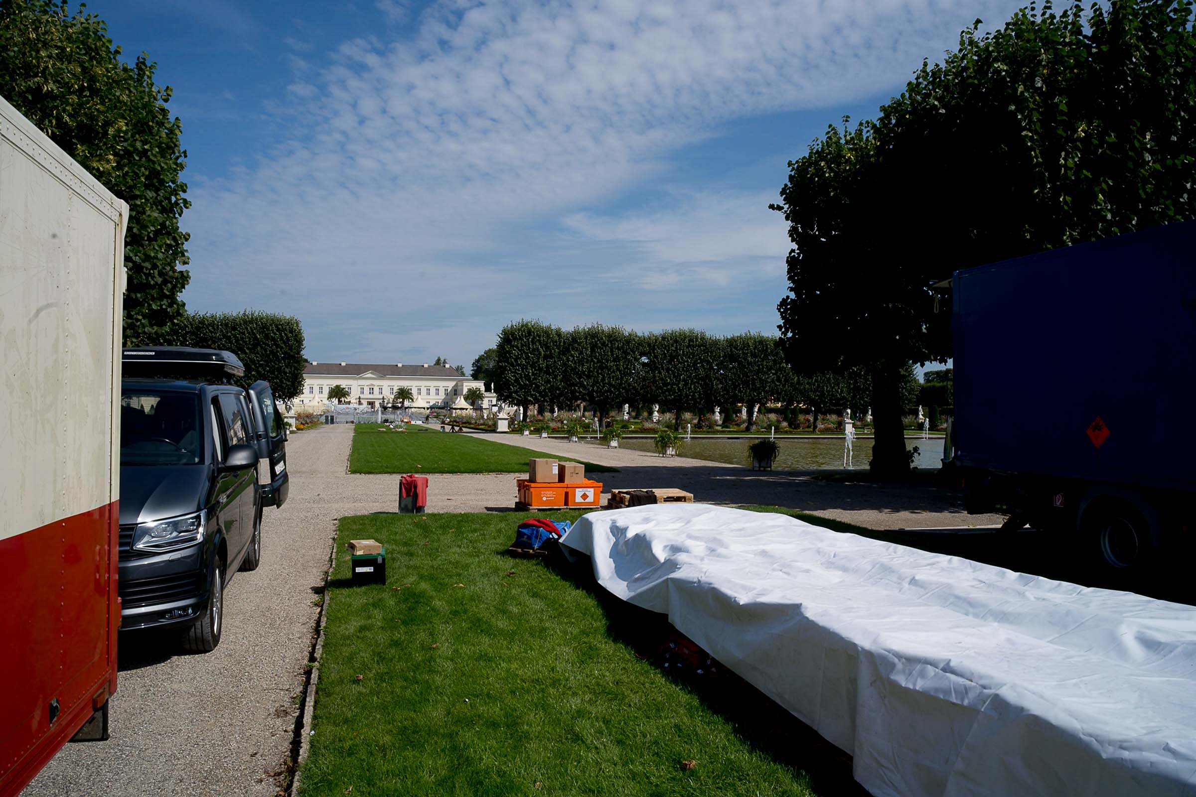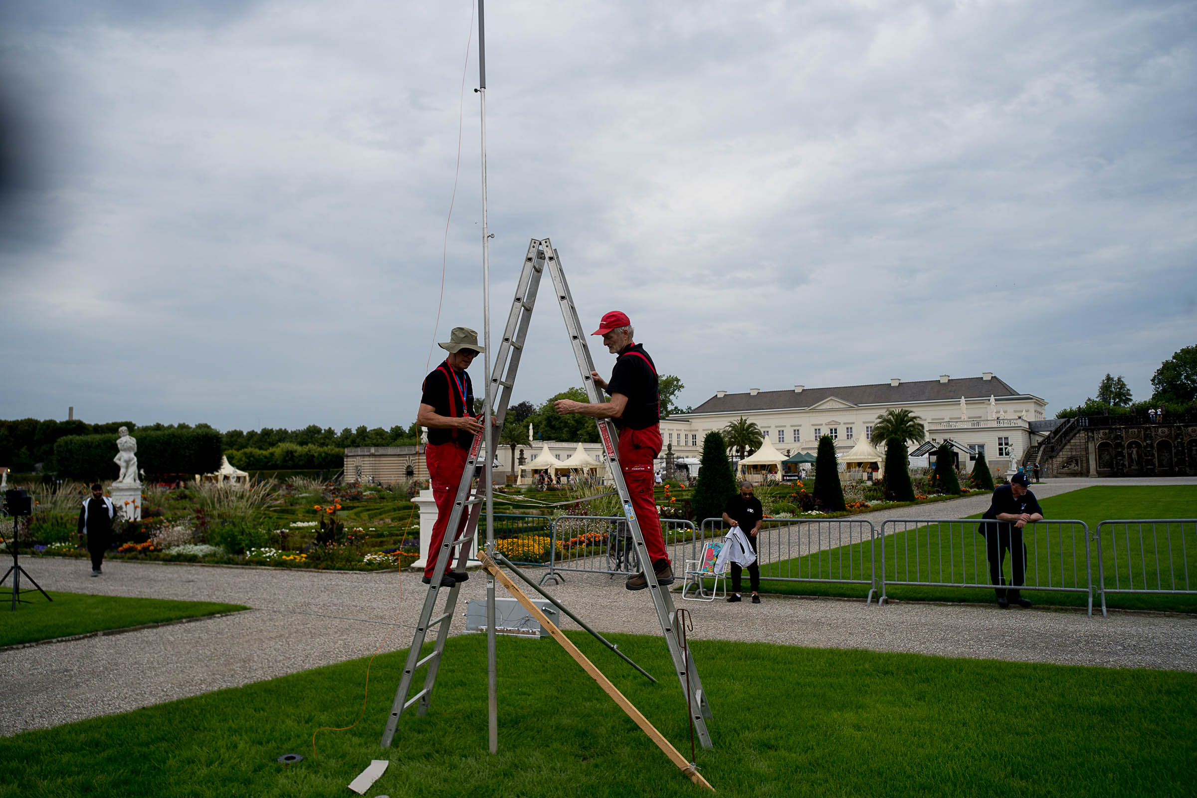 Die Herrenhäuser Gärten waren an diesem Tag festlich geschmückt. Zehn Hochzeiten fanden statt – mit Schloss, Wasserfontäne und gesperrten Wegen. Die Pyromantiker mussten sich ihren Weg durch das Labyrinth der Feierlichkeiten bahnen.