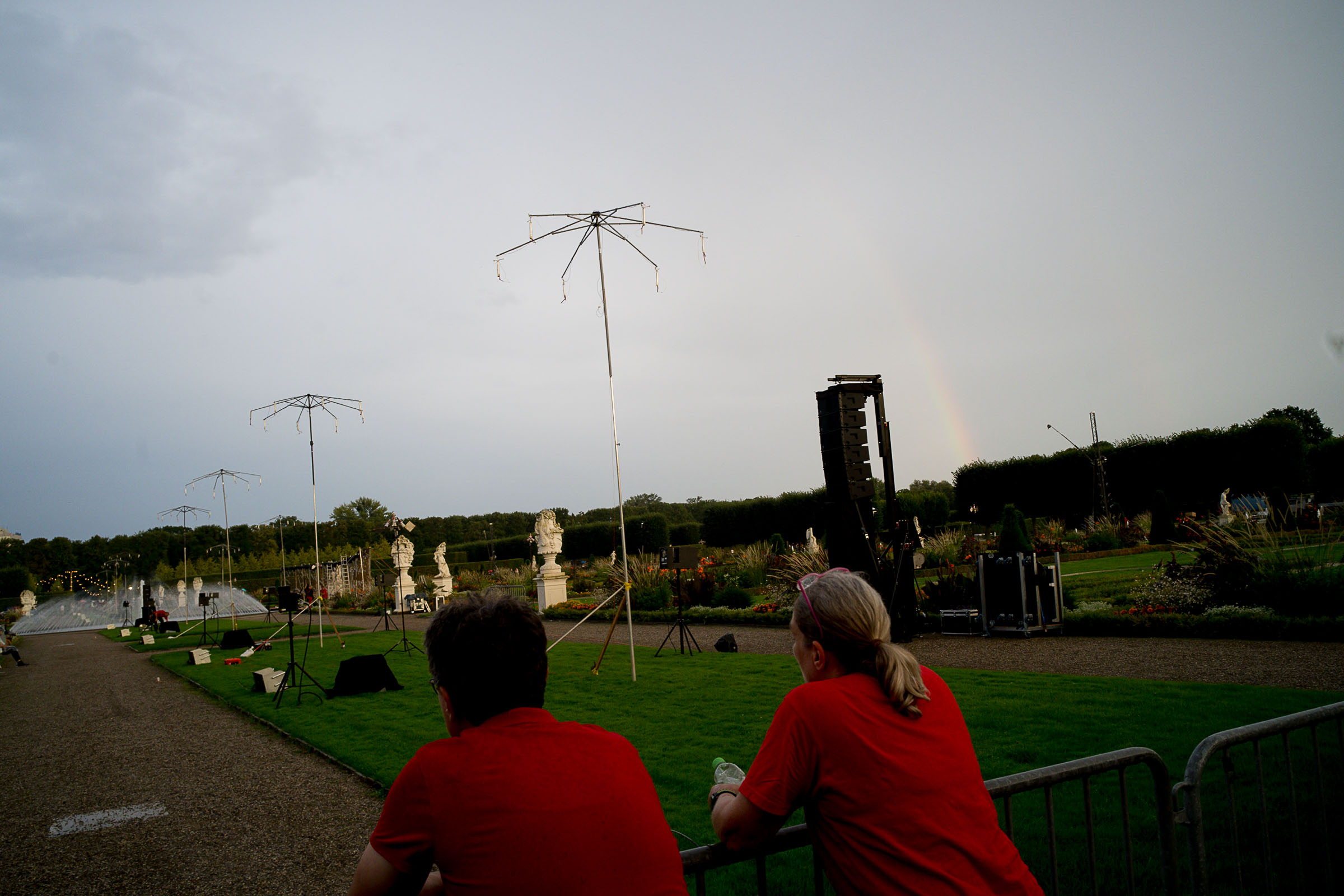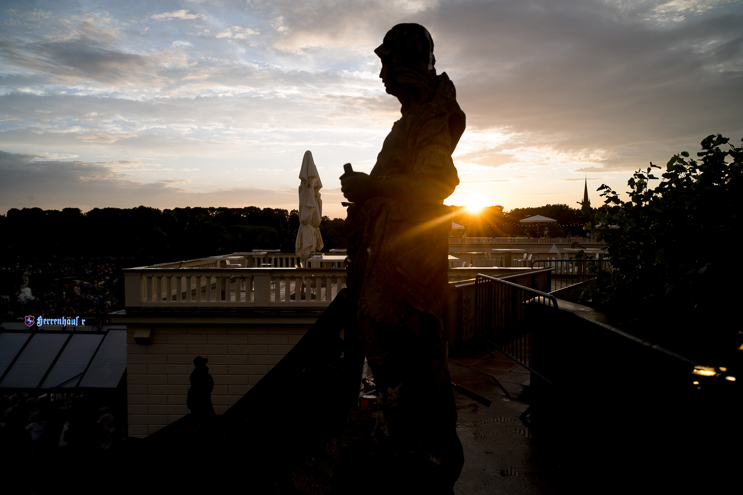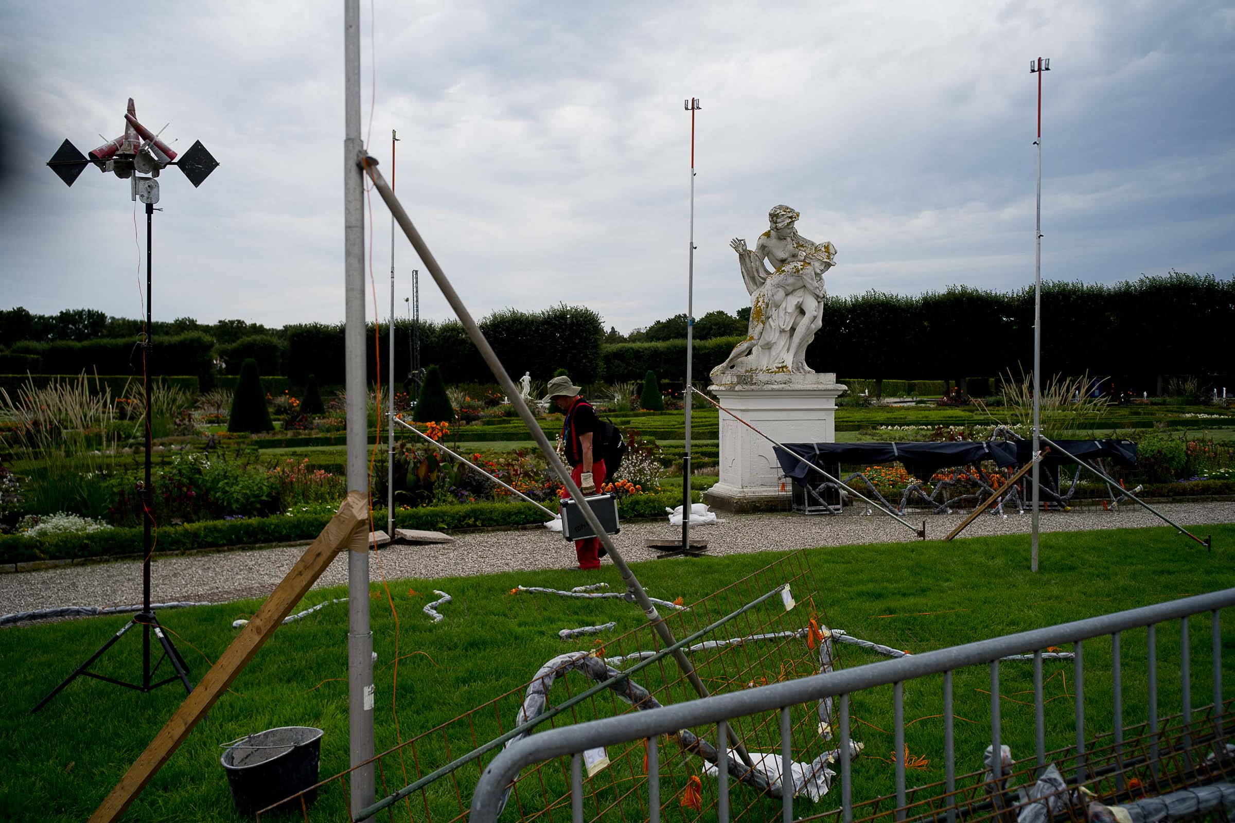 Die Herrenhäuser Gärten waren an diesem Tag festlich geschmückt. Zehn Hochzeiten fanden statt – mit Schloss, Wasserfontäne und gesperrten Wegen. Die Pyromantiker mussten sich ihren Weg durch das Labyrinth der Feierlichkeiten bahnen.