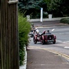 Oldtimer fahren vorüber, an der Kreuzung wird mit Handzeichen die Richtung angezeigt