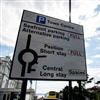 Verkehrsleitsystem in England zeigt full für alle Plätze und die Leute fahren trotzdem ins Parking.
