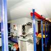Auf vier Stöcken stehen die Metallgestelle. In der internen Cafeteria ist die Farbe bunter, jedoch mit der gleichen Aufgabe. Die Stützen müssen auf jedem Stockwerk am genau gleichen Ort stehen, damit die Tragfähigkeit während der Lagerung der Bücher im Haus gewährleistet wird. Sonst kamen die Jahresbände des Vaterlands, der neuen LZ, Luzerner neusten Nachrichten LNN, Chemische Rundschau und Technische Rundschau in Schieflage und liegen auf der alten Tante (NZZ).