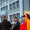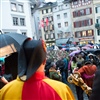 Ja, geregnet hat's an der diesjährigen Luzerner Fasnachtsplaketten Präsentation. Speziell die Enthüllung auf dem Kornmarkt war Schwerarbeit.